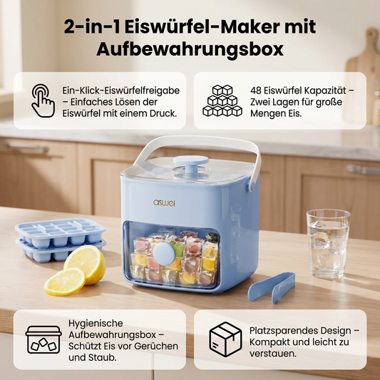 2-in-1 Eiswürfel-Maker mit Aufbewahrungsbox – 48 Eiswürfel, Doppel-Design