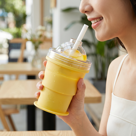2-in-1 Eiswürfel-Becher – Faltbar, mit Strohhalm & Silikonform für unterwegs